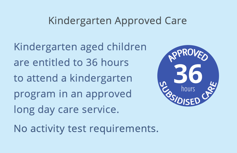 Our formal kindergarten program operates every day between 8.30am to 4.30pm and provides for the recommended minimum of 15 hours per child (for those that attend 2 or more days). Normal long day care programs and routines operate outside the kindergarten hours.